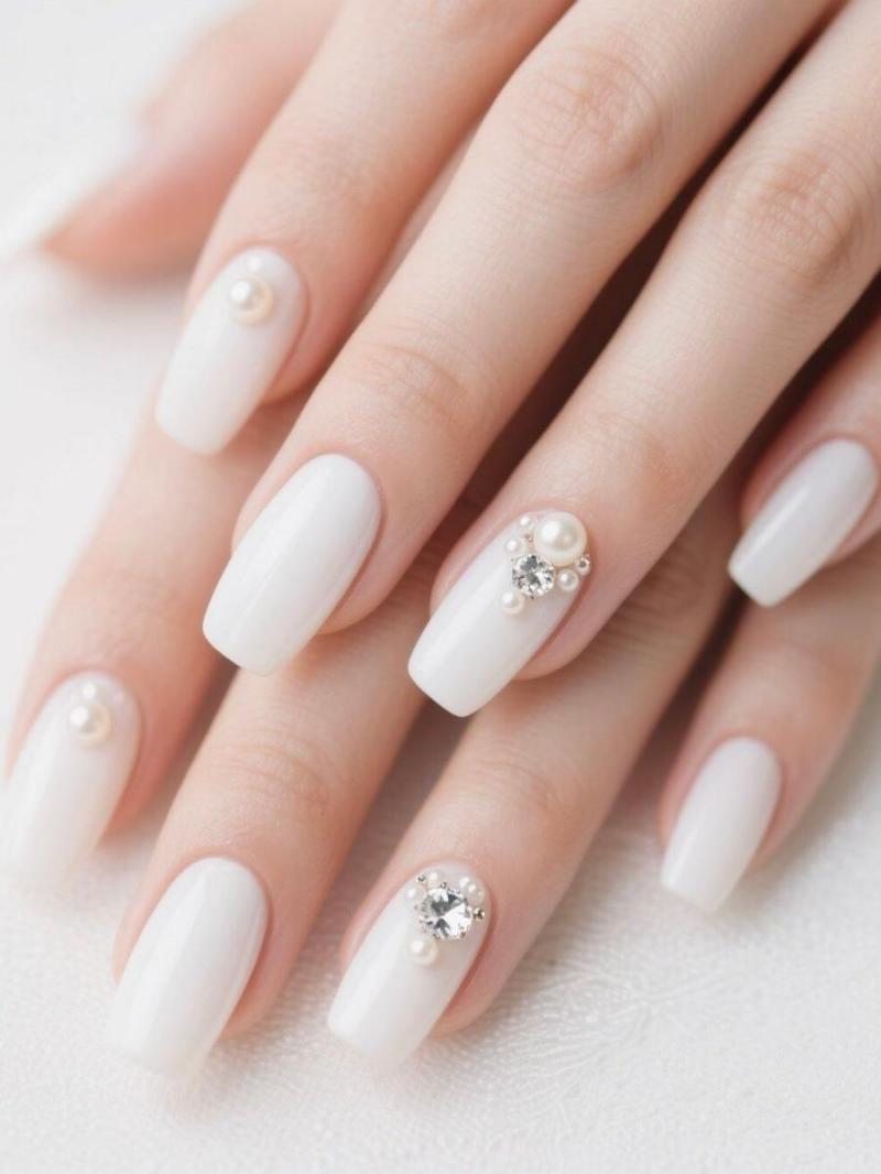Milky Veil · Handmade Press-On Nail